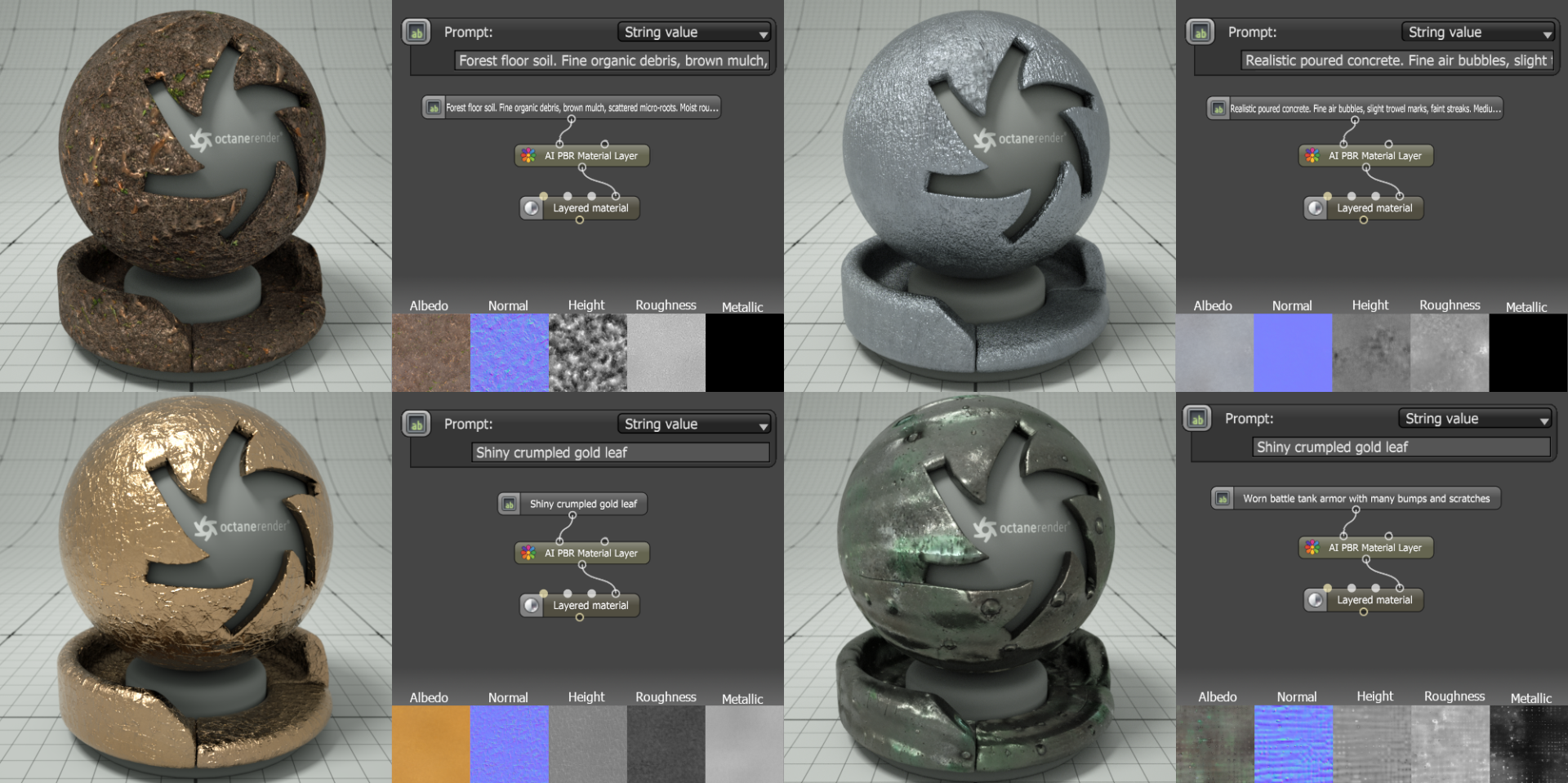 We are introducing a new AI Material Layer node supporting the generation of quality PBR materials using an artist defined text or photo reference prompt – enabling the creation of new materials almost immediately, and running locally on your machine.