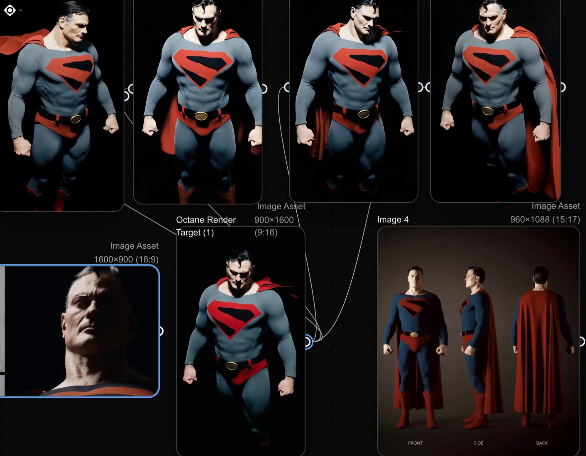 Generate raw materials and utility passes natively in Octane with integration into Octane DCC pipelines, including: textures, references, backplates, gobo maps, HDRIs, splats, image sequences, motion clips, clean plates, cutouts, audio design, multi-view images, reconstruction assists, and more.