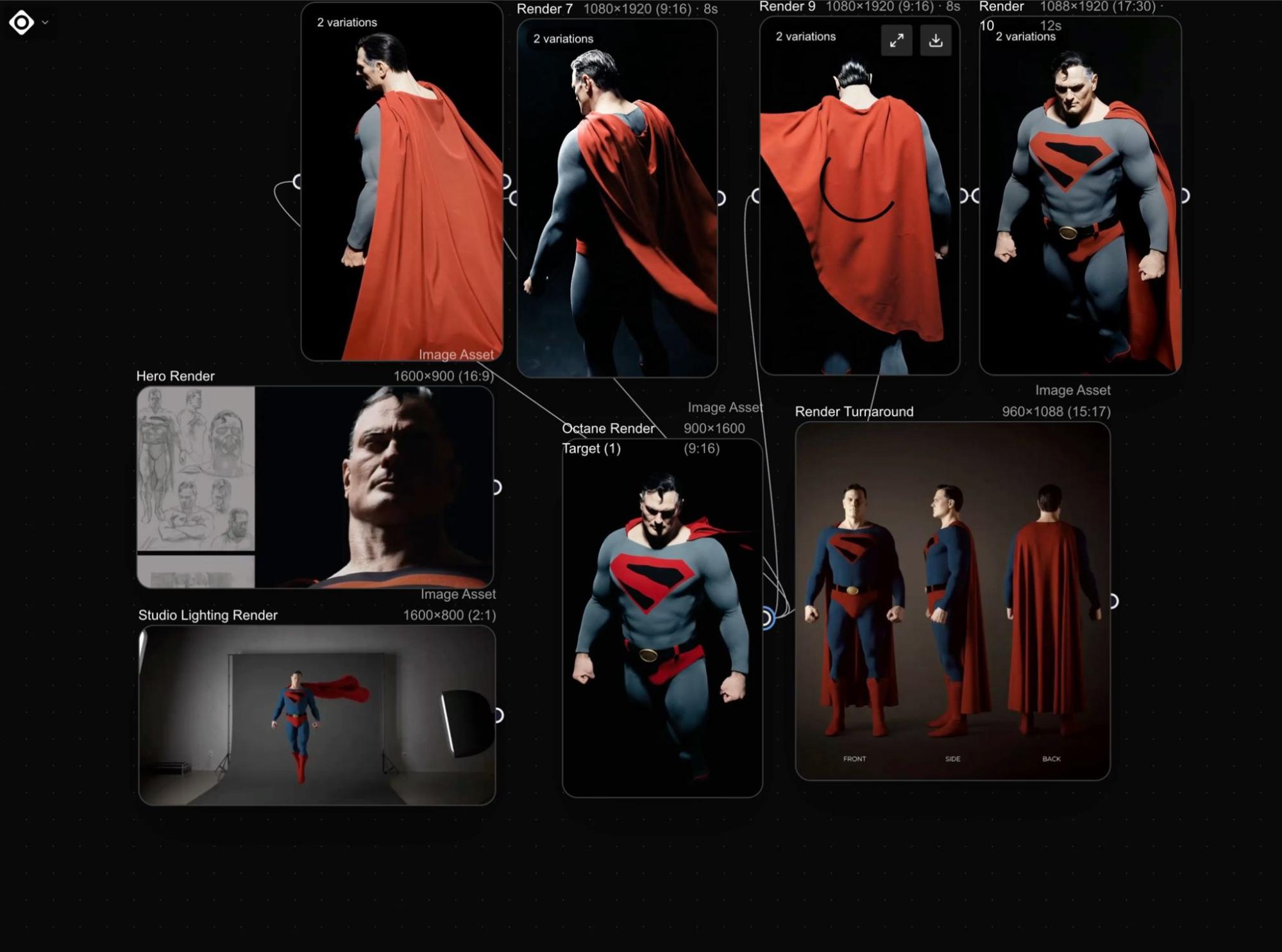 OTOY Studio empowers artists to integrate generative creation workflows inside professional 3D production pipelines – with an artist friendly node graph, creative canvas, and video editor for unmatched control.